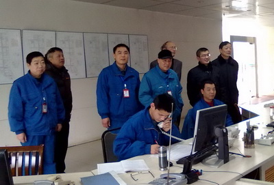 ????????2月7日正月初五,集團董事長楊振華和集團領導班子成員一大早就來到了張家港公司,看望節(jié)日期間堅持生產的干部職工,并送上新春的祝福。圖為楊總等領導正在生產調度室了解生產運行情況。