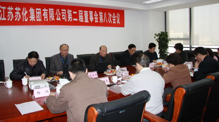 ????????12月27日,江蘇蘇化集團(tuán)有限公司第二屆董事會(huì)第八次會(huì)議在蘇州國檢大廈召開,來自各股東單位的董事、監(jiān)事共計(jì)12人參加會(huì)議。會(huì)議由董事長楊振華主持,財(cái)務(wù)總監(jiān)戈才午向董事會(huì)報(bào)告2010年經(jīng)營活動(dòng)和財(cái)務(wù)預(yù)算預(yù)計(jì)完成情況,以及2011年經(jīng)營目標(biāo)和財(cái)務(wù)預(yù)算。 2010年在董事會(huì)的正確領(lǐng)導(dǎo)下,集團(tuán)領(lǐng)導(dǎo)班子堅(jiān)持以科學(xué)發(fā)展觀為統(tǒng)領(lǐng),積極應(yīng)對復(fù)雜多變的國內(nèi)外經(jīng)濟(jì)環(huán)境,團(tuán)結(jié)帶領(lǐng)公司廣大干部職工積極應(yīng)對各種挑戰(zhàn),圍繞市場制定策略,增創(chuàng)營銷競爭新優(yōu)勢;強(qiáng)化安全環(huán)保責(zé)任,增創(chuàng)節(jié)能減排新效益;加快技術(shù)創(chuàng)新步伐,增創(chuàng)科學(xué)發(fā)展新實(shí)力;資本運(yùn)作開拓思路,增創(chuàng)轉(zhuǎn)型升級新機(jī)遇;堅(jiān)持以人為本理念,增創(chuàng)和諧企業(yè)新局面。集團(tuán)經(jīng)濟(jì)實(shí)力躍上新臺(tái)階,集團(tuán)轉(zhuǎn)型發(fā)展取得新突破,企業(yè)文化得到新的提升,集團(tuán)的經(jīng)濟(jì)得到穩(wěn)步健康發(fā)展。會(huì)議還對其它有關(guān)事項(xiàng)進(jìn)行了報(bào)告和討論。