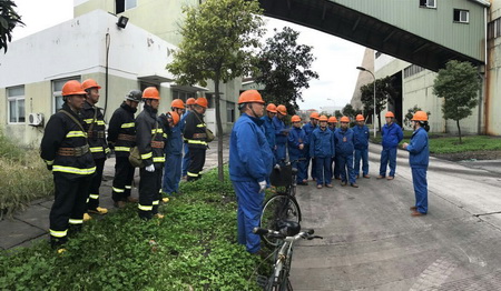 ? ? ? ? 2016年11月9日是全國第25個消防宣傳日,為不斷增強江蘇蘇化集團張家港有限公司全員消防安全意識和滅火應急能力,張家港公司以“119”消防宣傳日為契機,組織開展了一次《熱電廠煤庫起火燃燒應急演練》。本次演練模擬了熱電煤庫內(nèi)因粉煤堆積時間長,庫內(nèi)氣溫高,導致煤堆內(nèi)部自燃。演練由張家港公司副總經(jīng)理成建敏任總指揮,副總經(jīng)理馮雪任觀察員,安全環(huán)保管理部及公司消防隊、生產(chǎn)技術(shù)部及調(diào)度中心、綜合辦公室、熱電廠等參加了演練。?