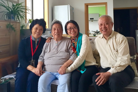 離休干部李桂蘭也是當(dāng)年從青島遷建蘇州時進(jìn)入蘇化廠工作的,當(dāng)年參加革命時還是個紅小鬼的她今年已經(jīng)90高齡了。他育有五朵金花,女兒是小棉襖,這話一點(diǎn)不錯,女兒們個個對她都很好,隨便那家都可以住的?,F(xiàn)在她住在第二個女兒家里,二女兒家在胥口鎮(zhèn)的一個有電梯的公寓里,離太湖不遠(yuǎn),空氣比城里好很多,她女兒說,媽住到這里后,基本沒咳嗽過。令人稱奇的是,90高齡的老人仍有一口整齊潔白的牙齒,也沒有假牙,她說主要是小時候家里窮,記得到6歲還沒吃過糖。老人的腦子很清楚,也很健談,我們與她合了影,并祝她健康長壽。